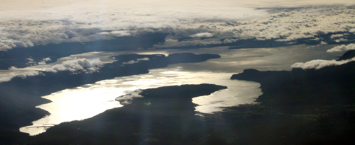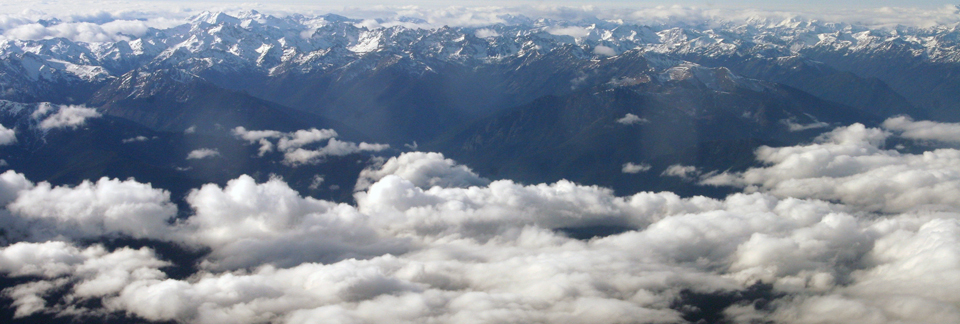 in the distance indistinguishable clouds and mountains |