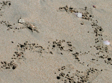 crabs at my footfall scuttling sideways disappear into sand dugouts |