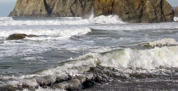breaking on the rocks rolling waves relentlessly rush to meet the shore |